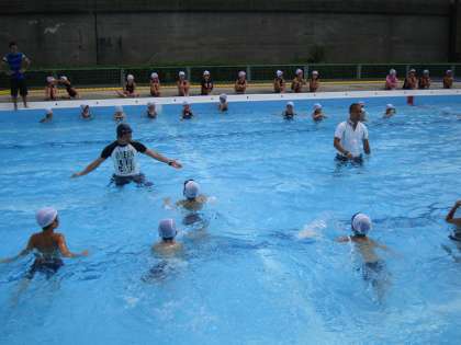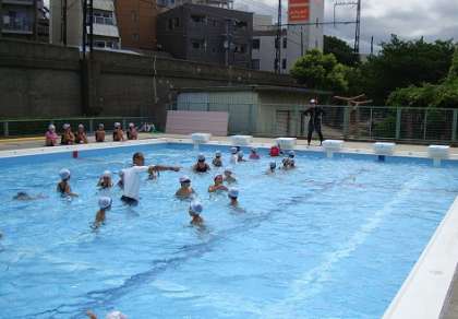 授業とは違う先生に教えてもらって、たくさんの友達と一緒に楽しく泳いでいました。
