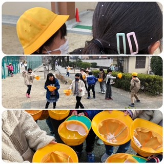 終業式の日の休み時間、ちょうどのタイミングで、雪やあられがたくさん降ってきました。とってもとっても寒い1日でしたが、運動場には、子どもたちの元気な姿と歓声がいっぱいです。思いっきり楽しんでいました。