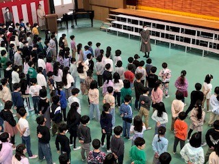 校長先生から、「1年間、一人ひとりがよくがんばって、伸びましたね。春休みを元気に楽しく過ごして、新しい学年を迎えましょう」とお話がありました。みんなしっかりと聞いていました。