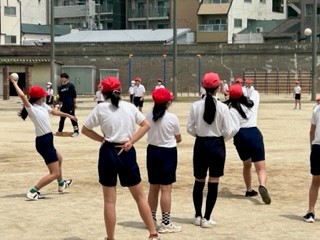 4・5・6年生が1時間ずつ学びます。今日は、走り方やボールの投げ方などについて、基本的な動きを丁寧に教えてもらいました。
