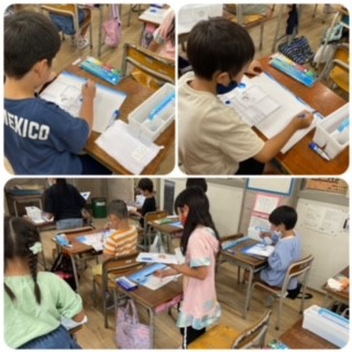 「きれいな色」「少しずついろがかわって、ふしぎ」2年生が、絵の具の学習に取り組みました。まあたらしい道具にみんなドキドキしながらも、とっても楽しそうです。