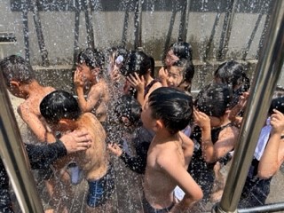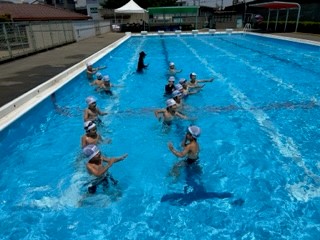 1年生のプールの様子です。大きなプールにびっくりしながらも、楽しく学習しました。