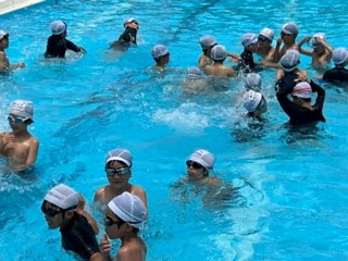 4年生の様子です。友だちと手をつないで、上手に浮いたりもぐったりしていました。