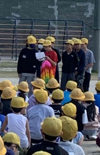 全学年で協力して折り上げた千羽鶴へのお礼が、1年生から5年生の児童に伝えられました。