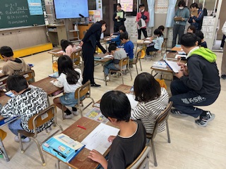 1年生の算数で校内の授業研究会を行いました。ひき算のやり方について、は(はやく)・か(かんたんに)・せ(せいかくに)できる方法をみんなで考えました。