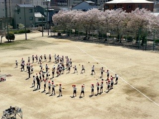 金曜日は、成南中学校から体育科の先生が来て、4・5・6年生に授業をしてもらっています。4年生では、学級ごとに大きな円を作って、息を友だちと合わせる運動をしていました。