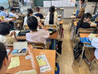 5年生の教室では、裁縫の実習をしています。5年生から始まる家庭科の学習。とても意欲的に学習しています。