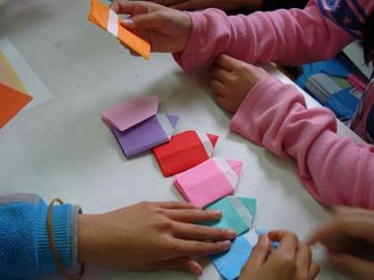 支援員さんが来室した子どもたちに、折り紙で作ったしおりを配ってくれました。