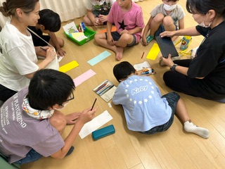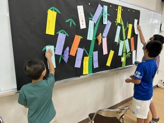 さくらんぼタイムで七夕の短冊や飾り作りをしました。やさしさあふれる願いごとがたくさんありました。一階のさくらんぼ教室前に飾っています。