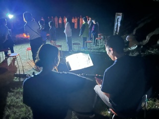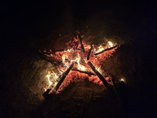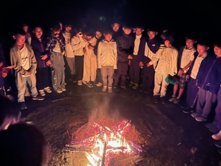 先生たちのギター伴奏でいっしょに歌い、最後は、みんなで星になった火を見つめました。