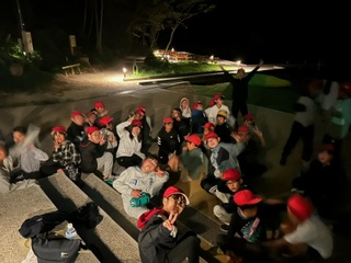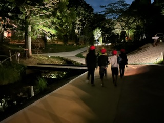 きれいにライトアップされた遊歩道をグループごとに歩きます。