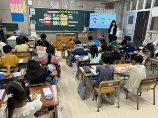 一年生で栄養についての学習がありました。新今宮小学校の栄養教諭・柳本先生にきていただきました。