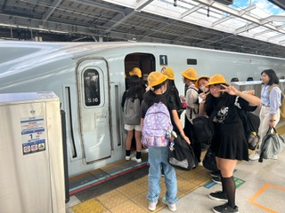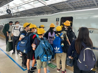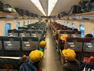 新幹線に興奮気味の子どもたちです。