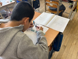 昨日に引き続き、算数・理科・英語に取り組みました。