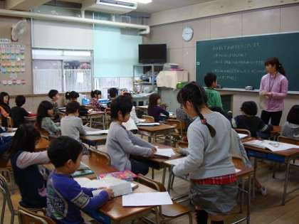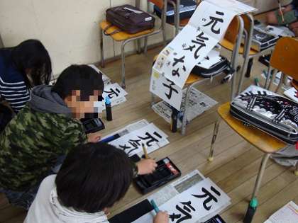 教室に帰ると、宿題のチェックや書初め、席かえなどをして過ごしていました。