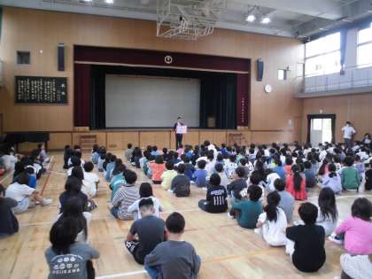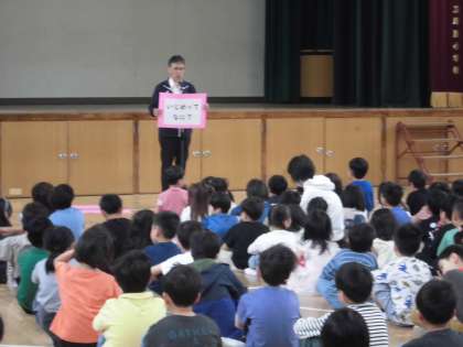 全校朝会で、じっくりと「いじめと命」について考えました。
