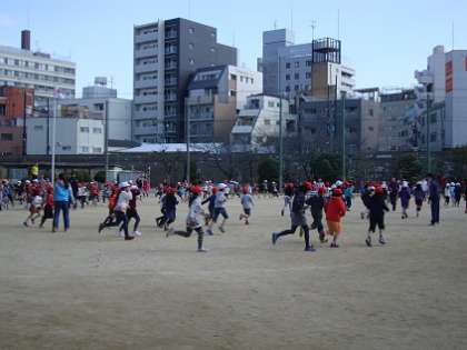 2時間目が終わると、薄着になって外に出て、走る準備をしました。