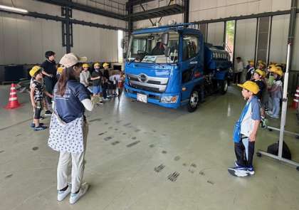 普段当たり前のように使っている水が、どのように作られているかを学びました。「沈殿池」「スラッジケーキ(水の中のゴミの塊)」「給水車」などの説明を聞きました。