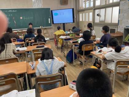 5年生は、「小数÷小数」の計算の仕方を考えています。わられる数が小数第一位までで、わる数が小数第二位までの数の時、どう計算すればよいかです。なかなか難しいようです。