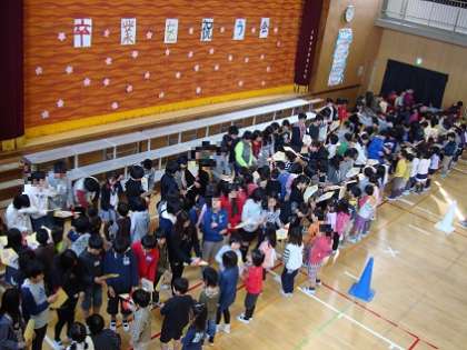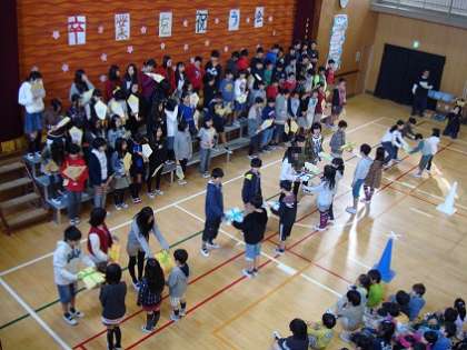 縦割り班でお世話になった6年生にメッセージを書いて、1年生から6年生に渡しました。