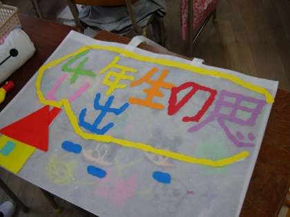 どの学年でも、一年間学校で描いた絵や習字などの作品を、持って帰るための作品袋を作っています。