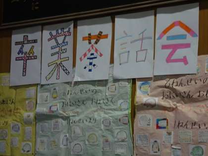 6年生の思い出のスライドを見たり、クイズがあったり、歌や合奏があったり・・・。