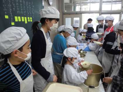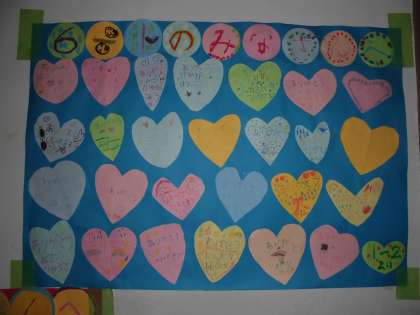 1年生にとって、給食の配膳や掃除は初めてのことなので、6年生がサポートをしました。重い食缶を一緒に持ったり、後ろから1年生の手を持って、おかずをよそったり、1年生が下校した後、教室をピカピカにしたりと、素敵な姿をみせてくれました。サポート期間が終わると、1年生のみんながお礼のメッセージをプレゼントしてくれました。6年生のみんなの清々しい顔が大変頼もしくみえました。