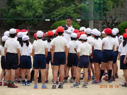 子どもたちは、コーチの方の話を真剣に聞いて、活動していました。