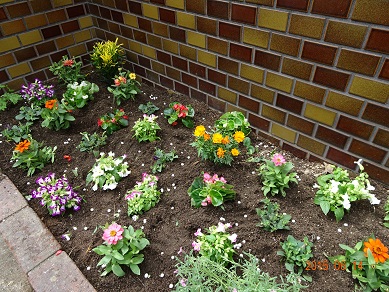 今年も、校門前のスペースに、かわいいお花を植えてくださいました。