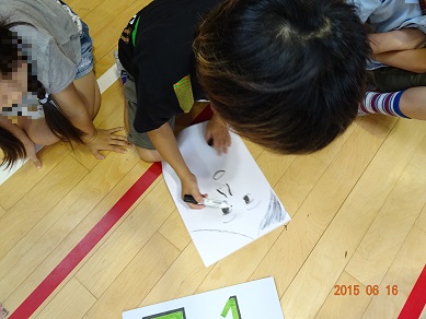 今日は、たてわり班のお友達と、担当の先生の「似顔絵リレー」をしました。