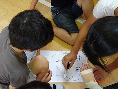 力を合わせて描きあげた似顔絵に、みんな満足そうでした。