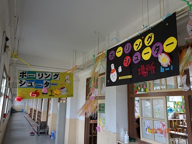 遠くからでも目立つように、廊下につってあるクラスもあります。