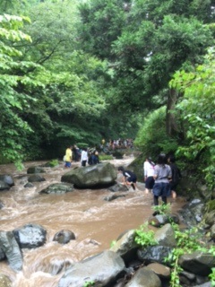 少し雨が降っていましたが、小降りになったので、川遊びをしました。