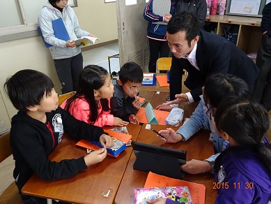 話し合いの様子をタブレットで録画して、自分たちが話し合っている様子を確認しました。