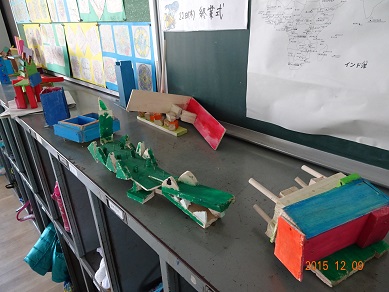 4年生は、図画工作で、のこぎりと金槌を使って工作をしました。