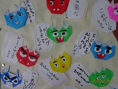 1年生の子どもたちは、節分を機に○○な自分を追い出して生まれ変わる決意です!
