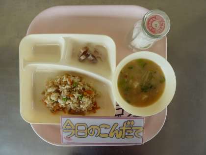 2月8日(水)の献立は「鶏ごぼうご飯・みそ汁・焼きれんこん・牛乳」でした。鶏ごぼうご飯は三つ割れ皿の上でごはんと具を自分で混ぜて食べます。しょうがの風味がおいしい具を上手に混ぜて食べてくれたのか、今日のごはんの残飯は少なかったです。みそ汁の具材が、豚肉にちくわが入っていたからか「今日のみそ汁は、豚汁やったな!」と…材料をしっかり気づきながら食べてくれているのがわかりうれしかったです。