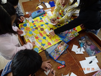 1年生は、グループで作ったすごろくを、お家の人と一緒に楽しみました。