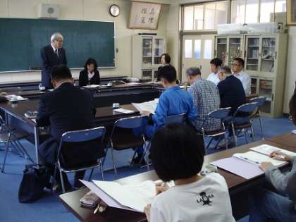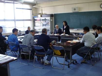 学校協議会委員長の柳井様初め、地域の方々、元PTA役員の方々、現PTA役員の方々、区役所の方と一緒に、今年度の岸里小学校の「運営に関する計画」について、話し合いました。