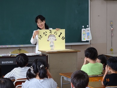 「はな子の1日」の紙芝居を見て、はなちゃんはどんな生活をしているのか、考えました。