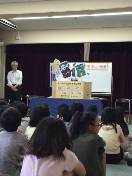 万引きについての人形劇もしていただき、子どもたちは興味を持って話を聞くことができ、よくわかったと話していました。