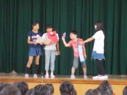 毎週月曜日の児童朝会や、木曜日の児童集会時には、先生方からのお話だけでなく、それぞれの係や委員会からのお知らせもあります。