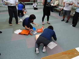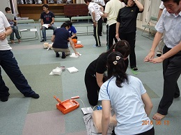 放課後、岸里小学校で、教職員が救命救急講習を受けました。