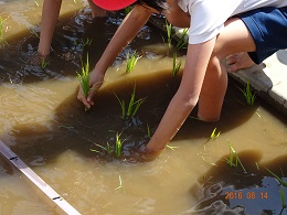 初めての経験に、恐る恐る田んぼの中に入る子、田んぼの水に足を取られて、なかなか動けない子、など、いろいろな表情を見ることができました。