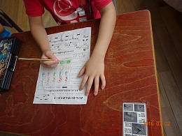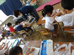 1年生は、金曜日の分を思い出して、カードに色をぬっていました。