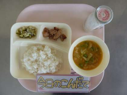 7月7日(金)の献立は「鶏肉のてり焼き・みそ汁・切り干しだいこんのゆずの香あえ・ごはん・牛乳」でした。「今日の献立は、切り干しだいこんだよ!」と聞いて「好き〜!」と答えてくれた1年生がいました。乾燥させることによって生のだいこんよりも、タンパク質や糖質、カルシウム、食物繊維などが増加し栄養が増します。6月には「切り干しだいこんのいため煮」で登場した切り干しだいこん、今回はきゅうりと一緒にゆずの香あえとしてでました。おいしく食べてくれたかな?