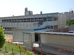 2学期始業式は、北門からの登校になります。仮校舎も出来上がり、夏休み中に南側の校舎は引っ越しします。