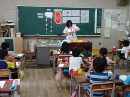 今日は、歯科衛生士さんに来ていただき、2年生のはみがき指導がありました。
