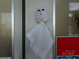 成南中学校の教頭先生が、岸里小学校のために、特大テルテル坊主を作ってくださっています。