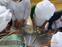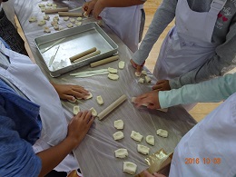 慣れない作業に、苦労している人もいましたが、みんな上手に餃子の皮を作ることができました。